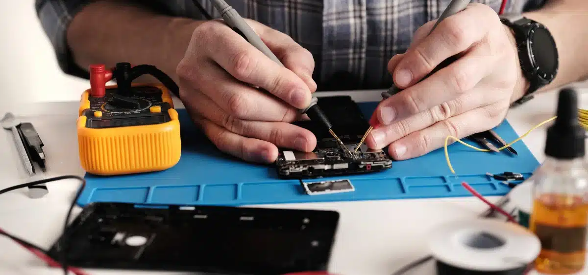 O medo de virar técnico de celular também aparece quando a pessoa imagina que precisa de uma estrutura cara logo de início: bancada completa, várias ferramentas profissionais, estoque grande de peças. Só de pensar nos custos, muitos desistem.